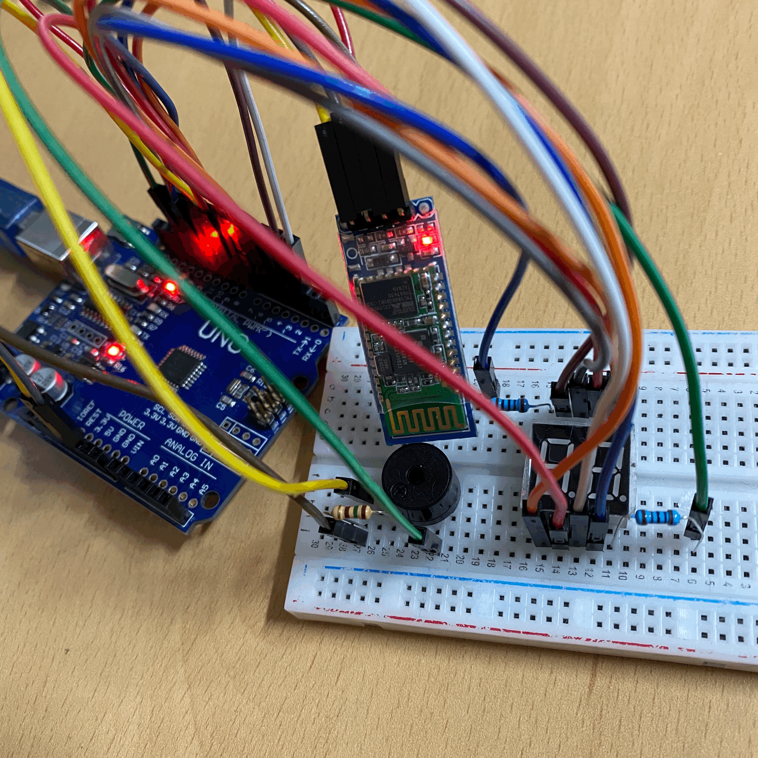 Building Rocket Launch System with Arduino Uno, 7 Segment 2 digit (Cathode Type), Buzzer, HC06 Bluetooth Module.