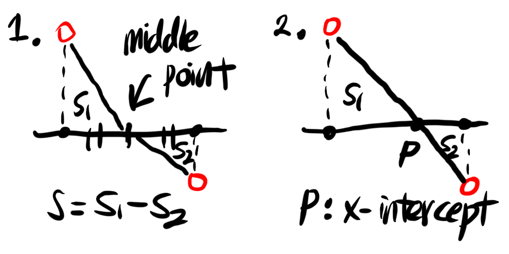 X_Intercept = delt*F1/(F1-F0);