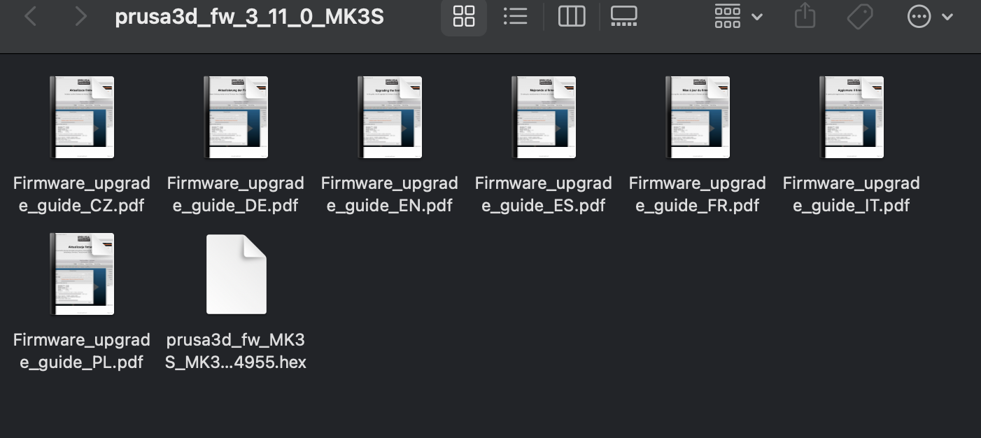 Mine is MK3S+, so download FIRMWARE 3.11.0 and decompress the file.