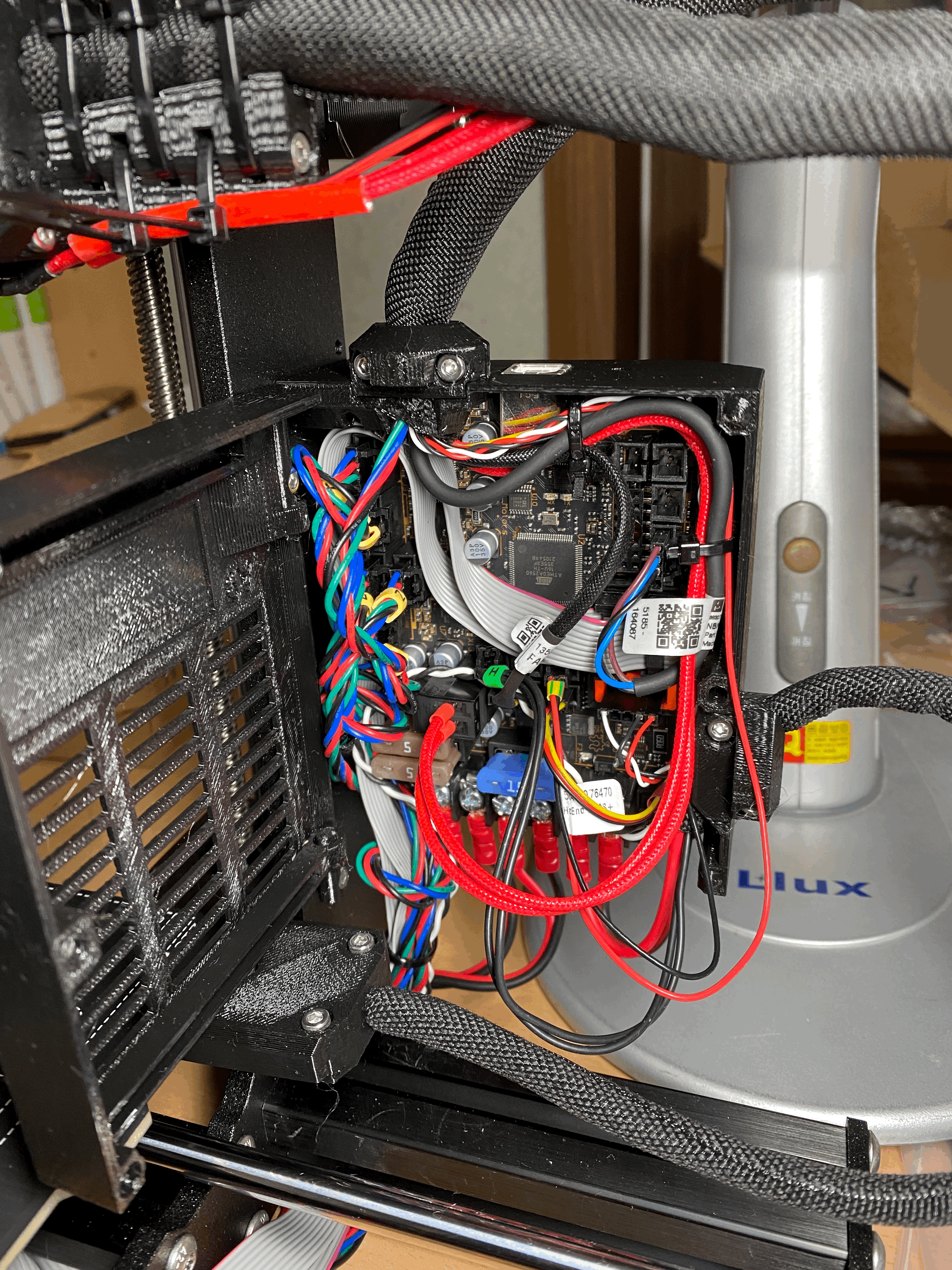 While browsing the 3D Printer Communities, I was inspired by someone's idea (https://www.thingiverse.com/thing:4200634). IKEA's Platsa would be a good choice, but because of its height, Filament Spool had to be outside. Like that.