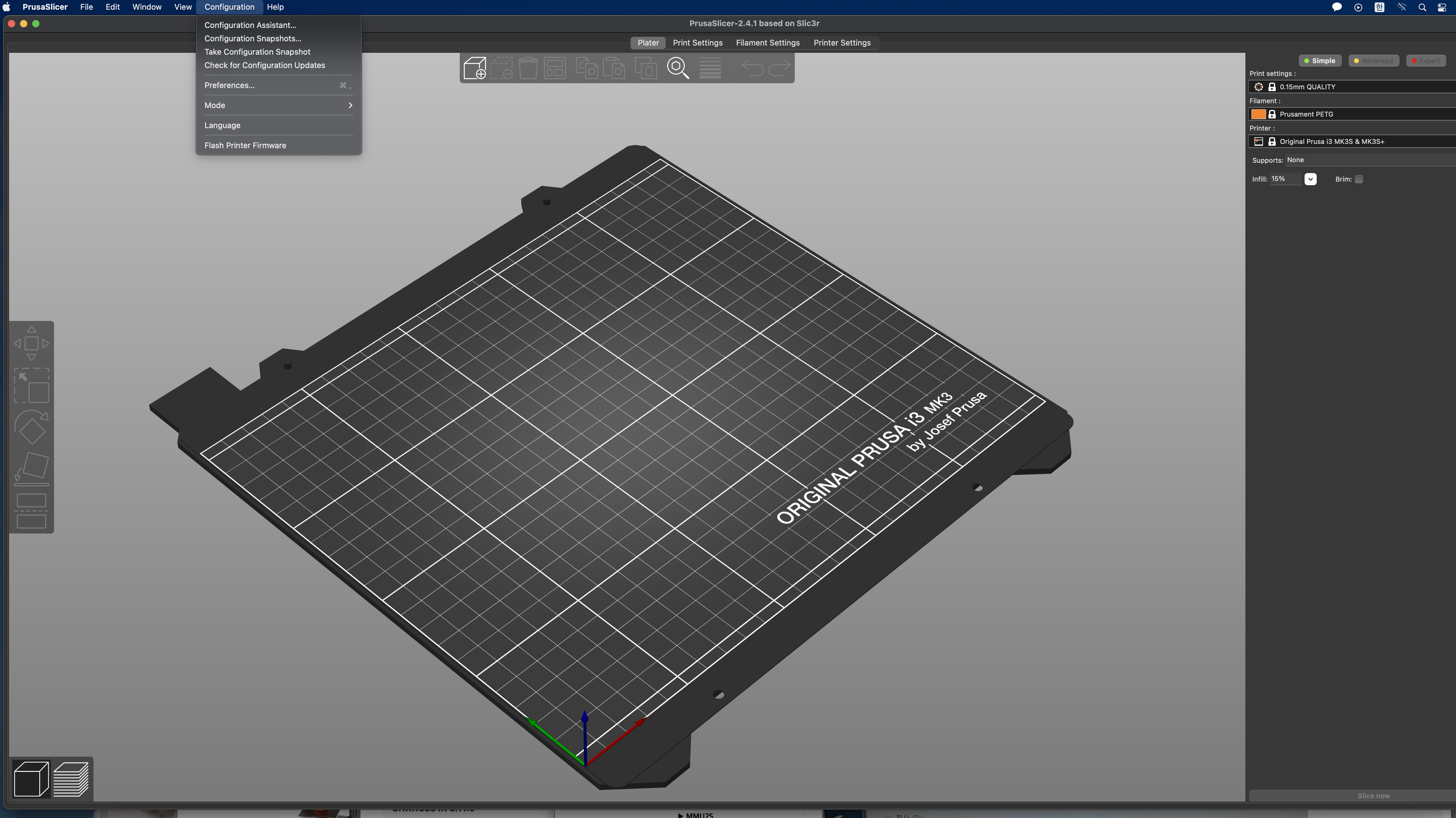 Then open Prusa Slicer and click ' Configuration '. Then you can see ' Flash Printer Firmware ' below.